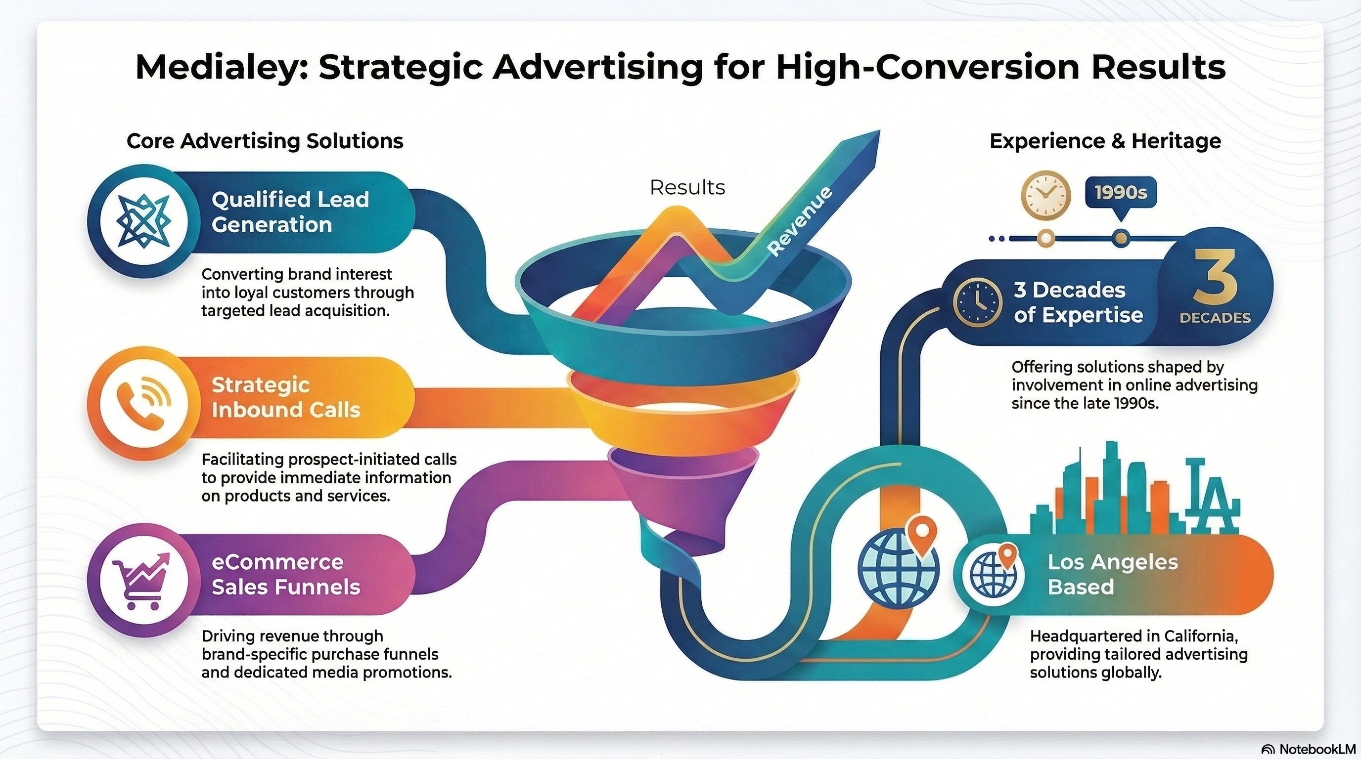 Click a topic below to learn more about our solutions and strategies for generating qualified prospects for your business. See how Medialey delivers results through tailored lead generation, inbound calls, and ecommerce solutions designed to deliver customers at an effective ROI.